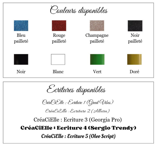 Pour toute commande, merci de me préciser le motif souhaité ainsi que la police d'écriture et la couleur via le formulaire de contact.