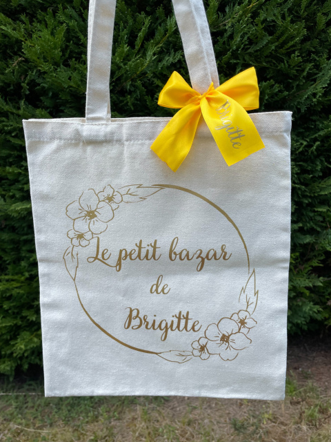 Tote bag beige ou noir avec noeud 100 % personnalisable